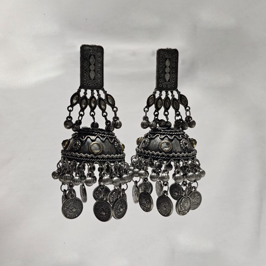 The Afsana earrings are inspired by the rich heritage of Afghan jewelry. These long Afghani jhumkas, adorned with intricate stonework, capture the essence of traditional craftsmanship while being surprisingly light-weight and trendy.