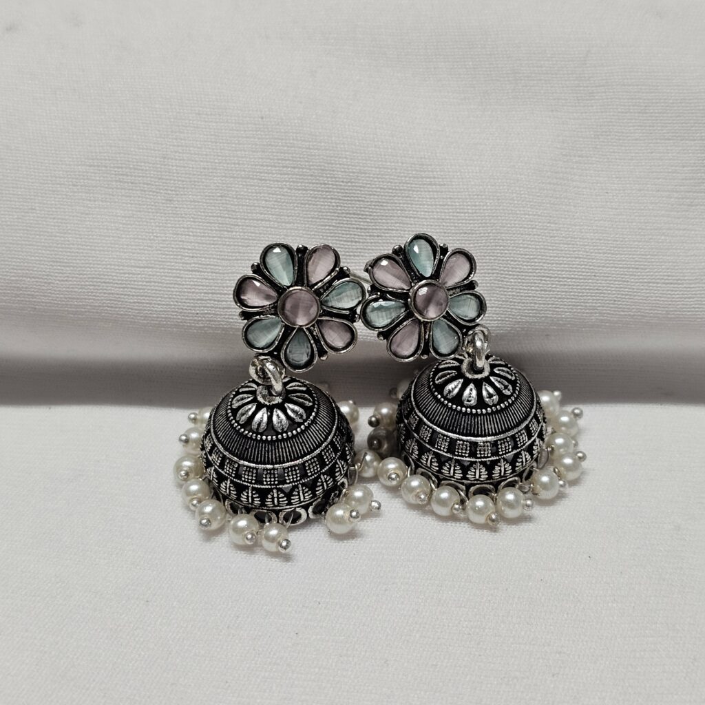 Aloka, meaning “light,” signifies brightness and beauty. These delicate earrings, designed for everyday wear, feature a floral design with stones at the top and intricate carvings with beads, offering elegance and versatility.