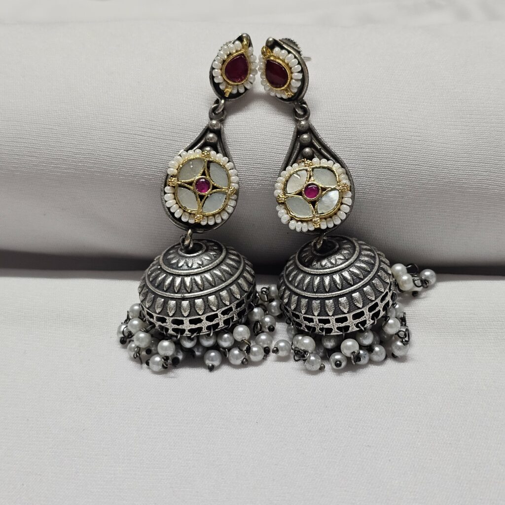 Mahika, meaning “dew drops,” symbolizes elegance and freshness. These lightweight long jhumkas are adorned with Jadtar stones, beads, and nacre, offering a classy and sophisticated look that enhances any outfit.