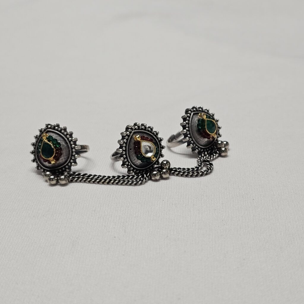 Trishala, meaning “three paths,” symbolizes the convergence of beauty, elegance, and tradition. This exquisite ring, designed for three fingers, combines the royal allure with the timeless Jadtar craftsmanship.